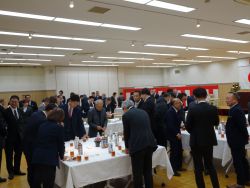 (協)山梨県流通センター新年互礼会が、2026年1月6日(火)に流通会館で開かれ、組合員・準組合員・来賓合わせて約70人が出席した。 冒頭、中込理事長は昨年の組合としての出来事を振り返った後、今後さらに発展するために、安全・安心で最適なる企業立地であることを目指し、すべての組合員・準組合員の理解と協力を求めると同時に更なる結束を呼び掛けた。 来賓として出席された、山梨県産業政策部小林洋一理事、望月智中央市長から祝辞をいただいた。祝辞に続いて鏡割りが行われ、参加者全員で新年を祝い合った。 |
